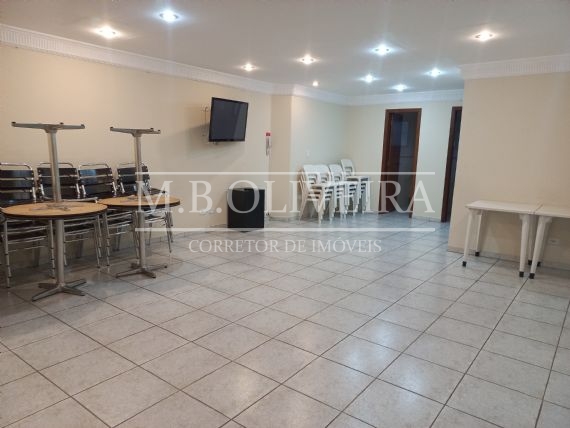 Área de lazer com piscina, quadra, salão de festas e churrasqueira
