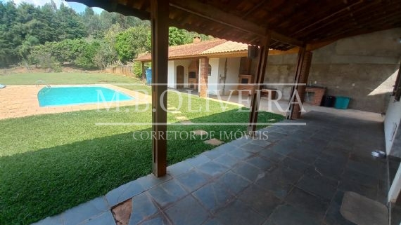 Chácara com 3.690m2 de terreno e uma casa de 220m2. Casa toda avarandada com 3 -dormitórios, sendo uma suíte, sala de TV, sala de jantar, cozinha, lavanderia, fogão e forno e lenha, churrasqueira, edícula com banheiro, piscina medindo 6,60 x 11m.
